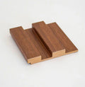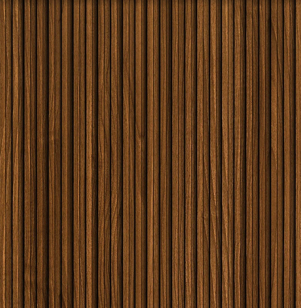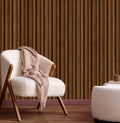 A sleek fluted wood wall panel in a warm chestnut tone, designed to add depth and natural elegance to modern interiors.