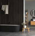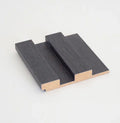 A contemporary fluted wood wall panel in a sleek charcoal grey finish, adding bold contrast and modern elegance to any space.