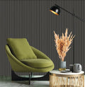 The unique combination of natural brown wood tones and matte black grooves creates a contemporary slatted effect that balances warmth with modern minimalism — ideal for accent walls and focal areas.